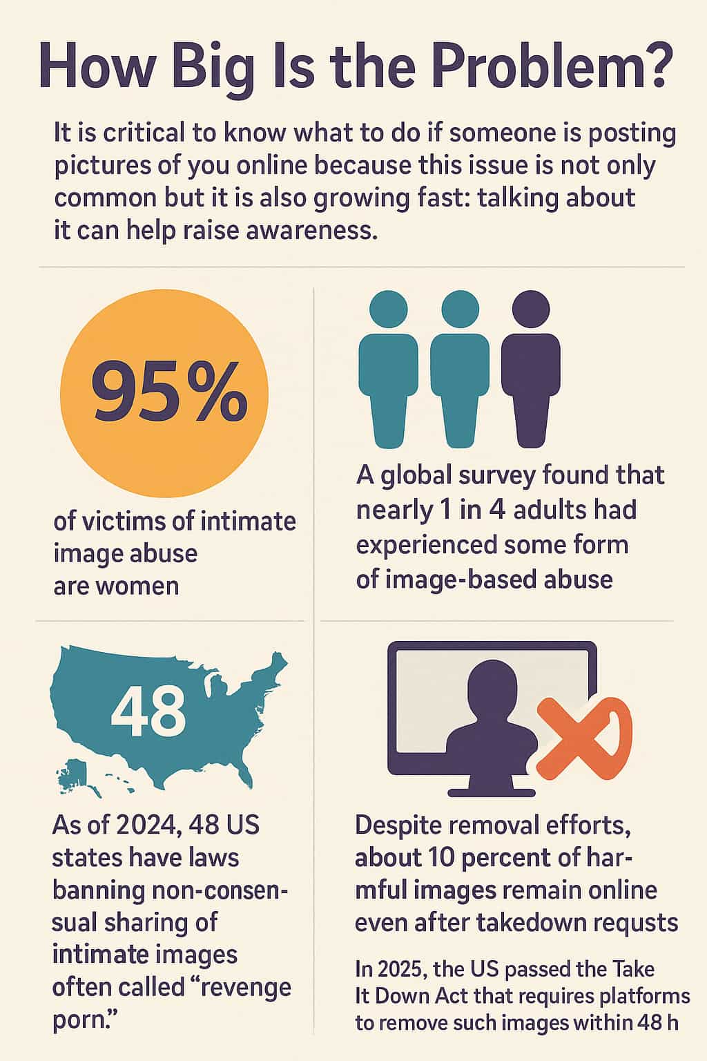 It is critical to know what to do if someone is posting pictures of you onlines because this issue is not only common but it is also growing fast: talking about it can help raise awareness.